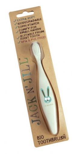 Návod: Prostredníctvom len minimálneho tlaku čistite zuby krúživými pohybmi. Používajte spolu s prírodnou zubnou pastou Jack N’Jill vyrobenej z nechtíka, s organickými príchuťami. Meňte kefku každých 8 týždňov alebo aj skôr, ak sa zničí. Vymeňte kefku po chorobe. Dôkladne opláchnite pred aj po použití. Môže sa sterilizovať. Štetinky nechajte vysušiť za prístupu vzduchu. Nepoužívajte bez dozoru dospelých. Nežujte ani nehryzte! Jack N‘ Jill je firma ohľaduplná voči prírode! Balenie rozložiteľné v prírode. Kartón z recyklovaného papiera a okienko zo 100% kukuričného škrobu.